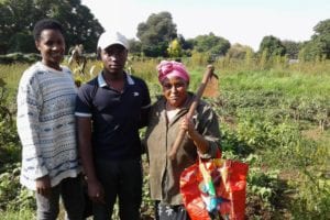 The accompanying photo shows our Ma B, as we call her, in her garden, holding her hoe. She is accompanied by her son, Dioscor, and co-resident and gardener, Marie Bernard. Ma B came to us from Rwanda in late 2011 and was able the next year to bring her son down. We are proud to have been able to assist her, thanks of course to our benefactors, and to have been able to put her son into the excellent Dominican Convent School, where he will matriculate this year. Ma B is a very knowledgeable gardener and was able, with Marie Bernard, to acquire a plot of land, without charge, a plot near Mercy House. These 2 ladies grow all sorts of vegetables there which they use to feed the residents at Mercy House. These include beans, spinach and many other foods which people in Central Africa like to eat. Well done Ma B and Mari Bernard for your achievement which is really admirable…