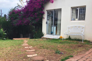 In early March this year, the sad day came when we had to do this. Even the roots had to be removed to avoid further complications. Now we have placed a bench and created a lawn and flower garden outside our office in memory of our mighty yucca, as the photo shows. It, too, will become beautiful. We are happy to say, however, that we had planted some of the off-shoots beside our play centre. They, too, are multiplying at an amazing pace. But we will not forget our Lady Yucca. May she rest in peace!