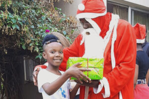 During the past year with the heavy lockdown regulations, this has not been possible. But we weren’t beaten! We asked all our usual Christmas guests to come during the week before Christmas and collect their gifts and on 25 December we had only a small group for lunch and even a Father Christmas, but he did not arrive on the roof this time, nor come on a motor bicycle as in the past! He even considerately wore a mask! Likewise at Easter, we did manage to invite the larger group, not for our usual lunch but in the afternoon to catch Easter eggs, and this, as always, was an occasion of fun and laughter, as photos show.