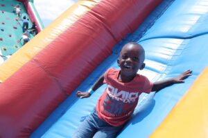 3 Cheers to Ms Heather Baatjies and the PTA of the American International School in Pretoria, for once again inviting us to their annual Fun Day. The fun happened on Saturday, 3 February 2024 and fun it was! The school spoilt us by sending 2 large busses to fetch us – just under 40 in all. They also brought us back. Whilst members of the AISJ community had to pay for their fun, our young people were allowed everything, including a delicious lunch, for free. The armband which they got as they walked in distinguished them for this privilege. The Disney Land style activities were something that our young people would never otherwise be able to enjoy! There was face painting, different waterslides, swimming, soccer, a photo kiosk and even a man-made dam with a suspended chair on top. Teachers volunteered one by one to sit in the suspended chair. If a child could hit a target when they threw a ball, the teacher tumbled into the water. Even the principal participated in this and he tumbled down! The pictures attached show some of the activities. Once again, a huge thank you to AISJ and especially to Heather, who worked hard and so efficiently, to get this off the ground for us.